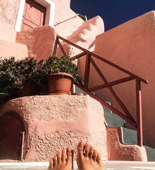 希臘的聖托里尼(Santorini)除了有著名的藍白色小屋,還有粉紅色的洞穴屋,它位於島上最北面的村子,坐落在海邊,飽覽愛琴海湛藍、舒心的海景,絕對是不俗的打卡景點。