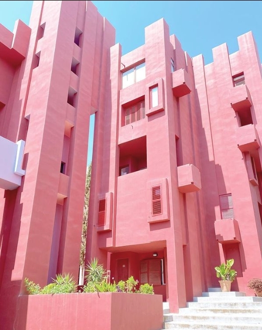 西班牙的La Muralla Roja是由當地建築師Ricardo Bofill設計,它的紛紅色外牆和縱橫交錯的樓梯設置,好像迷宮一樣,也令人聯想起早前全球大熱的Netflix劇集《魷魚遊戲》中,參加者從宿舍走向比賽場地時,經過的錯縱複雜的粉紅色樓梯。