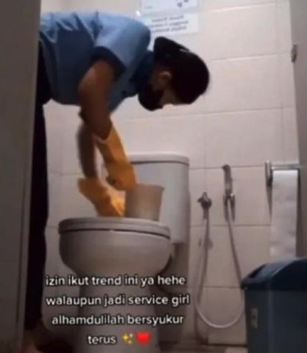 在印尼有名叫Nissya Hatala的年輕清潔工,她在社交網有近60萬人追蹤,不時都拍片分享自己的日常工作,工作時會綁起頭髮,蹲在地上認真刷馬桶。