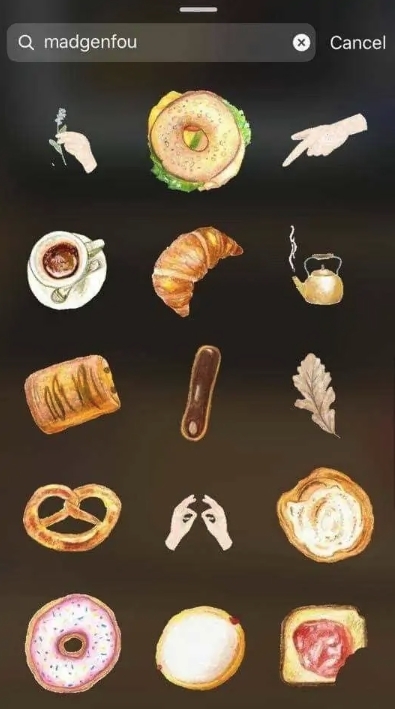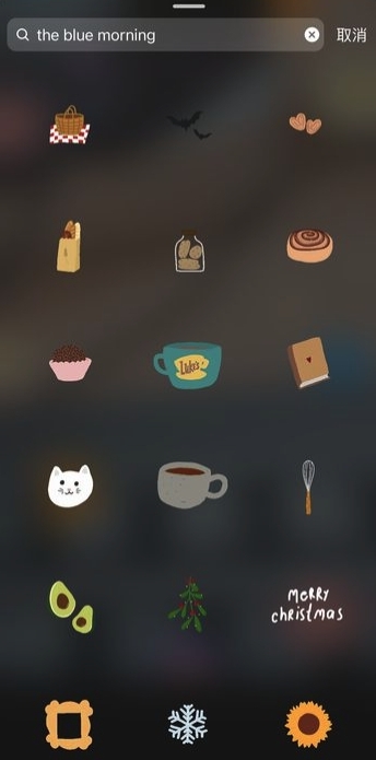 除了關於文字和可愛插圖的sticker,還有sticker是圍繞食物,正切合我們的日常三餐,或者到cafe打卡的相片,其中madgenfou和“the blue morning”包括了很多款可愛的食物sticker,如三文治、bagel、牛角包等;後者就專為咖啡愛好者而設,提供多款咖啡杯的sticker選擇。