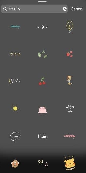 有時候IG Story配有可愛的公仔,更加傳達到想要表達的意思,以下3款公仔插畫sticker都非常可愛和清新,能夠加在大部分的Story。chxrry是簡約可愛風的sticker合集,更有迪士尼角色,例如Toys Story和Winnie the Pooh的插畫,還有一些正面句子、花和水果。