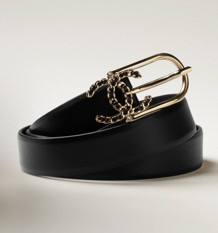 如果大家有較多budget可以考慮一下Chanel這款腰帶,以金屬配黑色小牛皮為主,扣環部分飾有品牌經典金屬織皮鏈帶設計的雙C Logo,上下都分別加有一顆水晶來點綴,超好看又華麗!