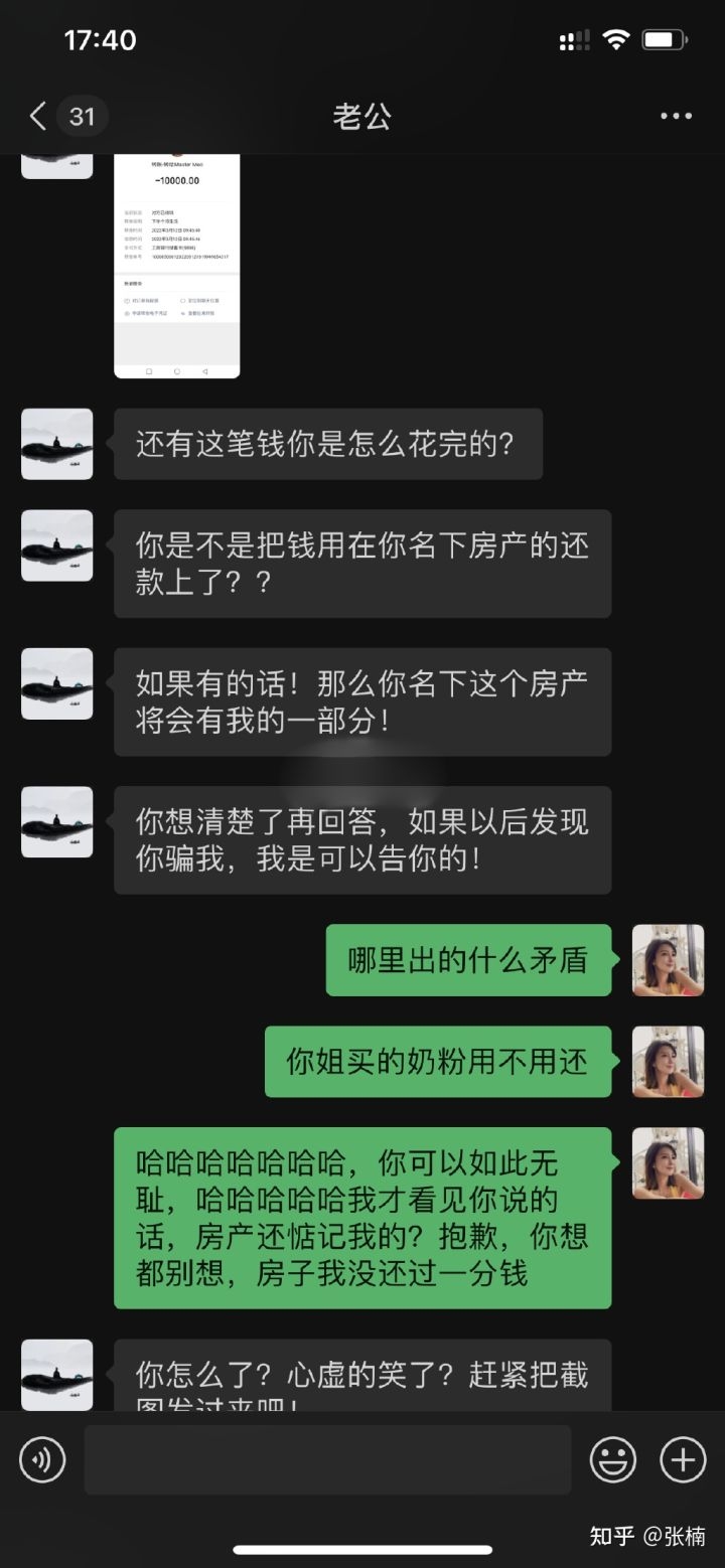 聊天紀錄中王東拿著妻子使用一萬元人民幣的紀錄,威脅妻子若是用來還房債,那麼房子的房產權就會有他的一份,語氣非常凶惡。妻子的回應非常絕望,期間更提及王東的前妻王小溪,疑似想與前妻一同取得現任妻子的婚前財產。