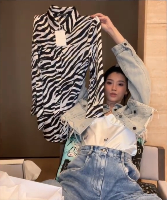 最近內地超模奚夢瑤又拍片分享近期入手的好物,她首先分享她現時身上正穿著的吊帶背心,她表示非常喜歡,因為睡衣上面印有不同顏色的蝴蝶圖案,還有很重工的鑽石吊環,而且最關鍵的是衣服的形狀好,可以外穿。再加上是真絲面料,非常華貴,售價是3880元人民幣(港幣約4513元)!