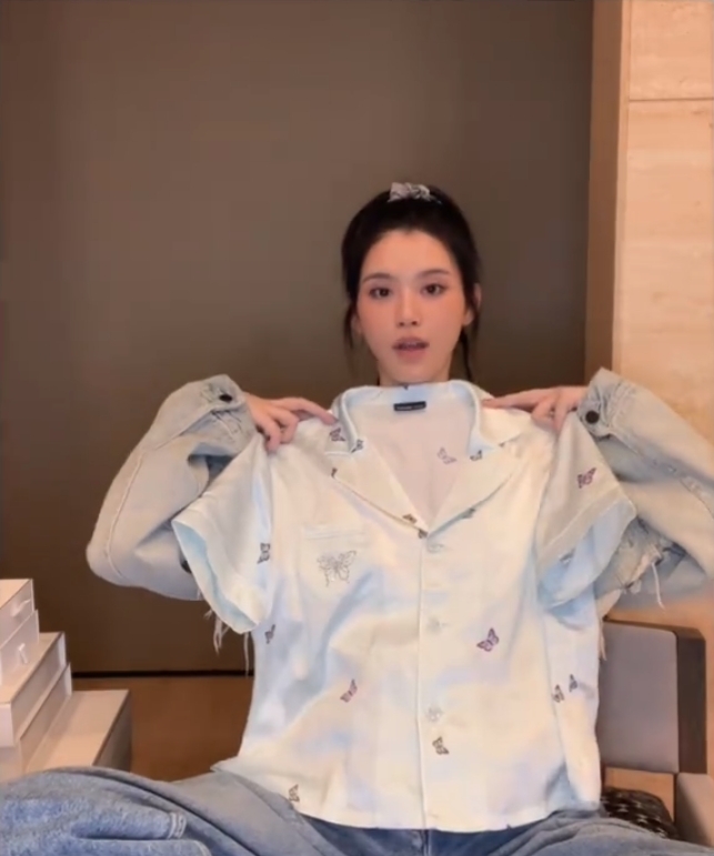 之後奚夢瑤又在影片中分享了其餘4套睡衣,包括淺粉色蝴蝶款套裝、淺藍色蝴蝶款套裝、斑馬紋連衣睡裙、斑馬紋吊帶裙。