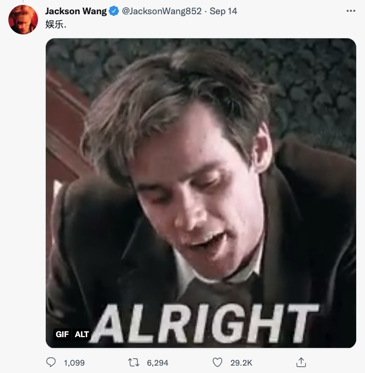 最後,他以中文寫下「娛樂」,並配上Jim Carrey無奈點頭的動圖(gif),對最近有關他嫖娼謠言表示無奈。帖文下方有不少網民留言明白謠言使人無奈,並表示支持王嘉爾,明言看到他的創意和努力,希望他不要為謠言而苦惱,繼續努力。