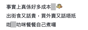 今次網民看過影片後都力撐193,「出街食又話貴,買外賣又話唔抵,咁叻咪餐餐自己煮囉」、「今次佢又講得啱喎,下下都講成本幾錢,人哋賺錢都唔得?」