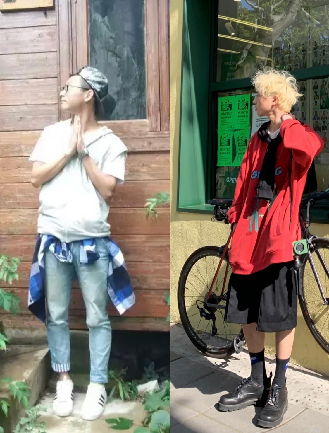 從照片中可見,網紅原來的打扮非常普通,而且皮膚較黑,在街上也不會多看幾眼的類型。但在女友悉心指導下,從一個平平無奇的宅男變成大帥哥,甚至連皮膚都變白變好了,原來是他女友塗防曬霜,又學會睡前要用洗面奶洗面。