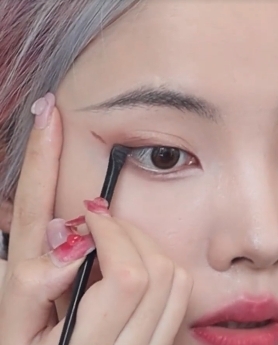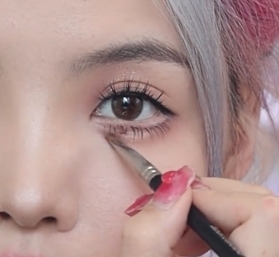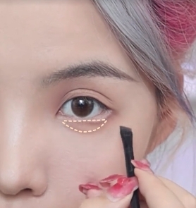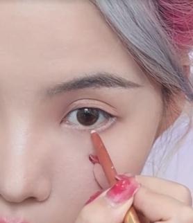 加深完之後,再往外拖拽著上一點,再用遮瑕筆填充一下內眼瞼的位置,這樣就有一個眼瞼下至了。