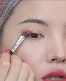 2.使用淺色眼影橫向鋪開,再使用深色眼影加深後1/3處,眼影的走勢是往眉尾上帶的。