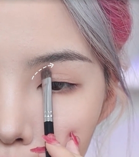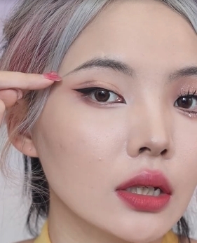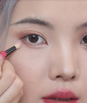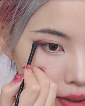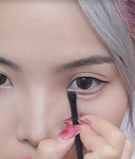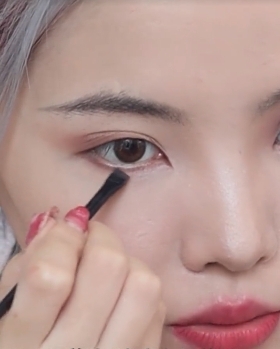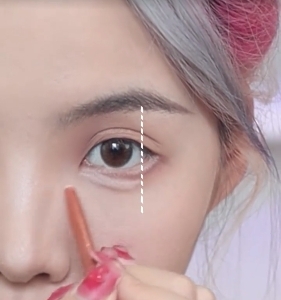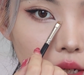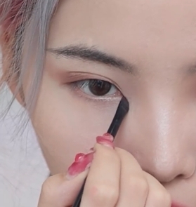 之後用遮瑕筆遮蓋一下眼尾勾的陰影,再在下眼瞼後1/3處用白色眼影提亮。