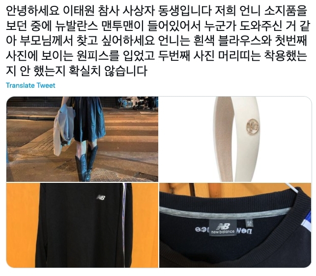 近日有位網民在社交平台發文,指自己的姐姐也是梨泰院慘劇的傷者之一,目前傷勢仍然嚴重還沒恢復意識。