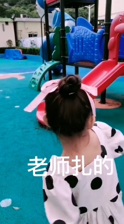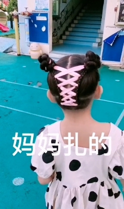 早上媽媽為女兒綁了一條馬尾辮子,頭頂還扣了一個黑色的蝴蝶結,但放學後變成兩條可愛的低辮子,不但蝴蝶結不見,還繫上了2個花花髮飾!