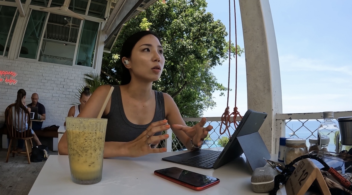 Kristie現時每月約2-3萬港元收入,視乎工作量而定,不過東南亞物價低,加上工作時間遠較香港少,其實十分「划算」!峇里島的平民炸雞套餐和三餸飯只需港幣十幾元,打卡cafe咖啡約$15 ,用香港價錢吃飯的話,食物質素就會超高!「我每月生活費約1萬港元,生活質素已經非常好,雖然我選擇東南亞旅居,但不代表過著刻苦生活虧待自己。」Kristie用港幣$3000月租泰國海邊度假屋,環境寫意,又可認識其他電子遊牧,結伴去潛水和行山!