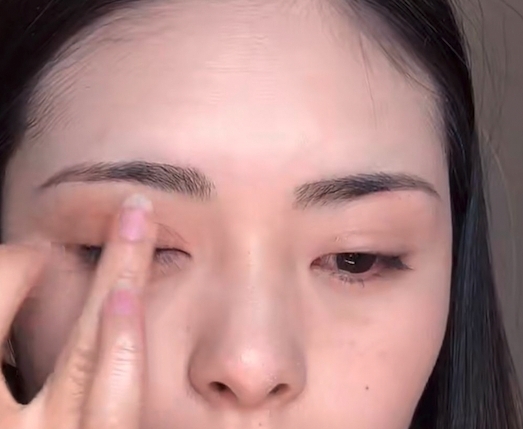 如果塗抹時感覺到有結塊,利用手指在雙眼皮褶的積線位置輕輕推開,結塊就會輕易被清除。