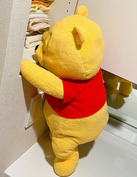 fans:哪裡可以買到一模一樣的維尼? 維尼:非賣品。在遊樂場贏回來的