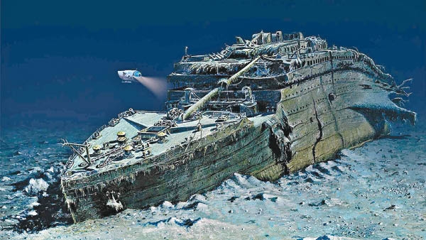順道一說,上圖的沉船殘骸是卡梅隆導演親自潛水,拍攝鐵達尼號真實沉船的殘骸,因此畫面是完全真實的!