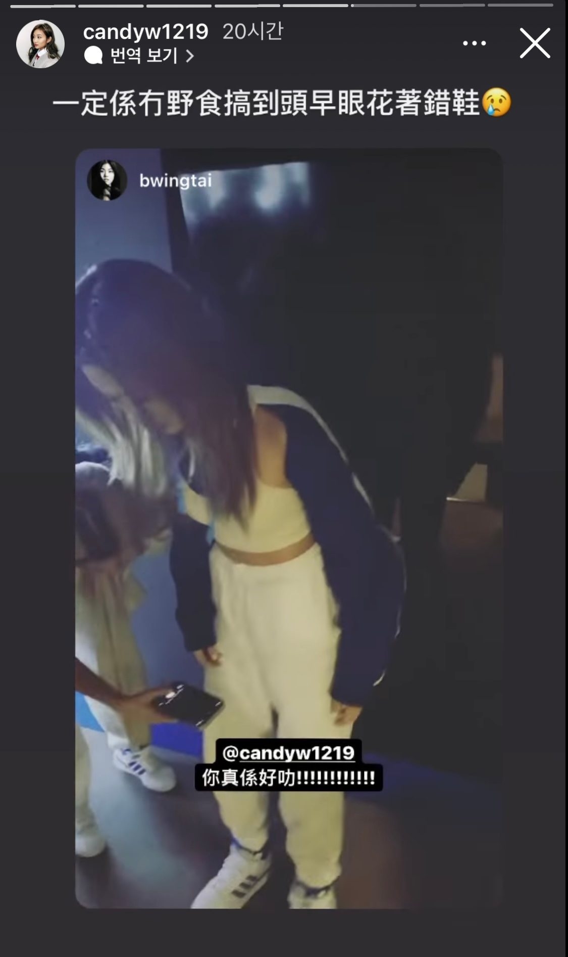 COLLAR日前正式與寶礦力簽約,品牌亦有在網上直播整個簽約過程及表演舞台,當中原來亦發生了一個小插曲,成員Candy(王家晴)竟然將波鞋左右調轉穿,但在表演舞台的時候仍然沒有察覺,事後就被隊友及經理人阿Wing拍片上傳到IG取笑。