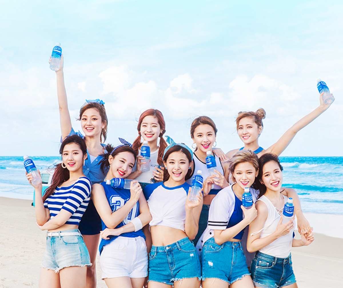 人氣韓國女團TWICE在2017年開始曾連續三年擔任寶礦力的代言人,即使不用穿上泳裝,單單是9名成員穿上藍色服裝在海邊奔跑的畫面已經好吸睛!