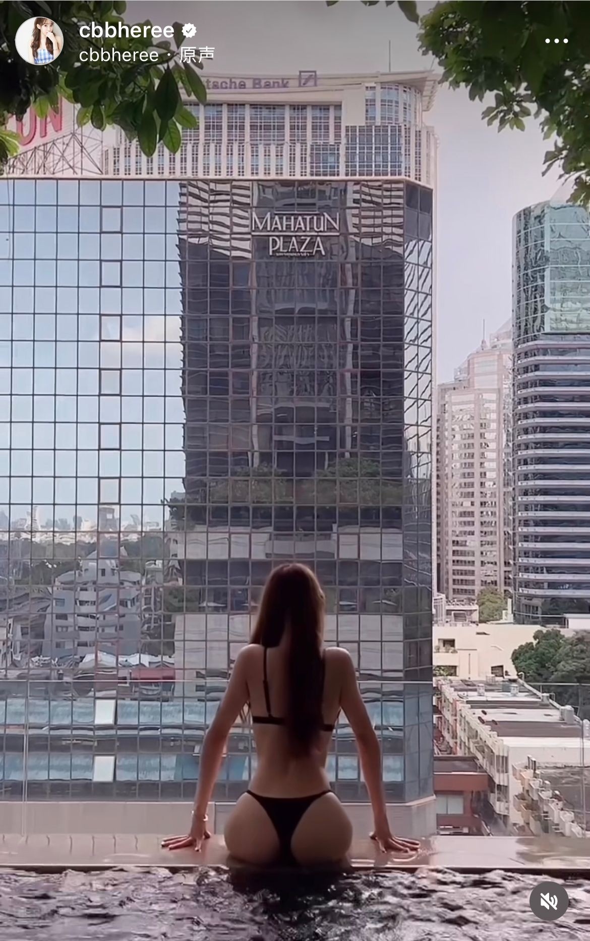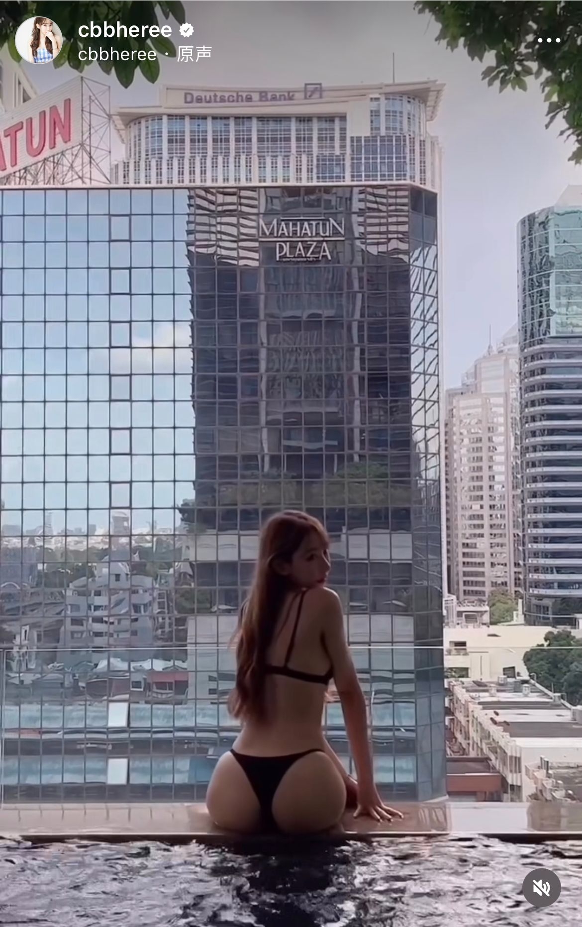 Cammi一向非常喜歡周遊列國,時常都會在IG大晒旅遊相,炫耀自己的奢華生活。而近日她到了泰國曼谷旅行,隨後還在IG上分享了一條在酒店泳池拍的影片。影片中的她身穿黑色比堅尼展現魔鬼身材,大晒纖腰和逆天長腿,身形fit爆!