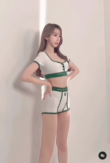 而下裝的T-back還使白滑蜜桃臀一覽無遺,大方派福利極養眼,火辣程度破表,令不少網民都感到心跳加速,紛紛留言:「很正」、「很瘦」!