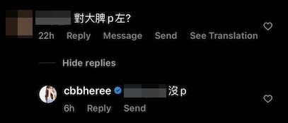 對於被網民質疑是P片,Cammi其後把對話截圖並分享到IG Story上,寫下:「很高興我身材去到影片都被質疑是P的了。我當是讚美吧!」,再度否認魔鬼身材是靠P片而得來。