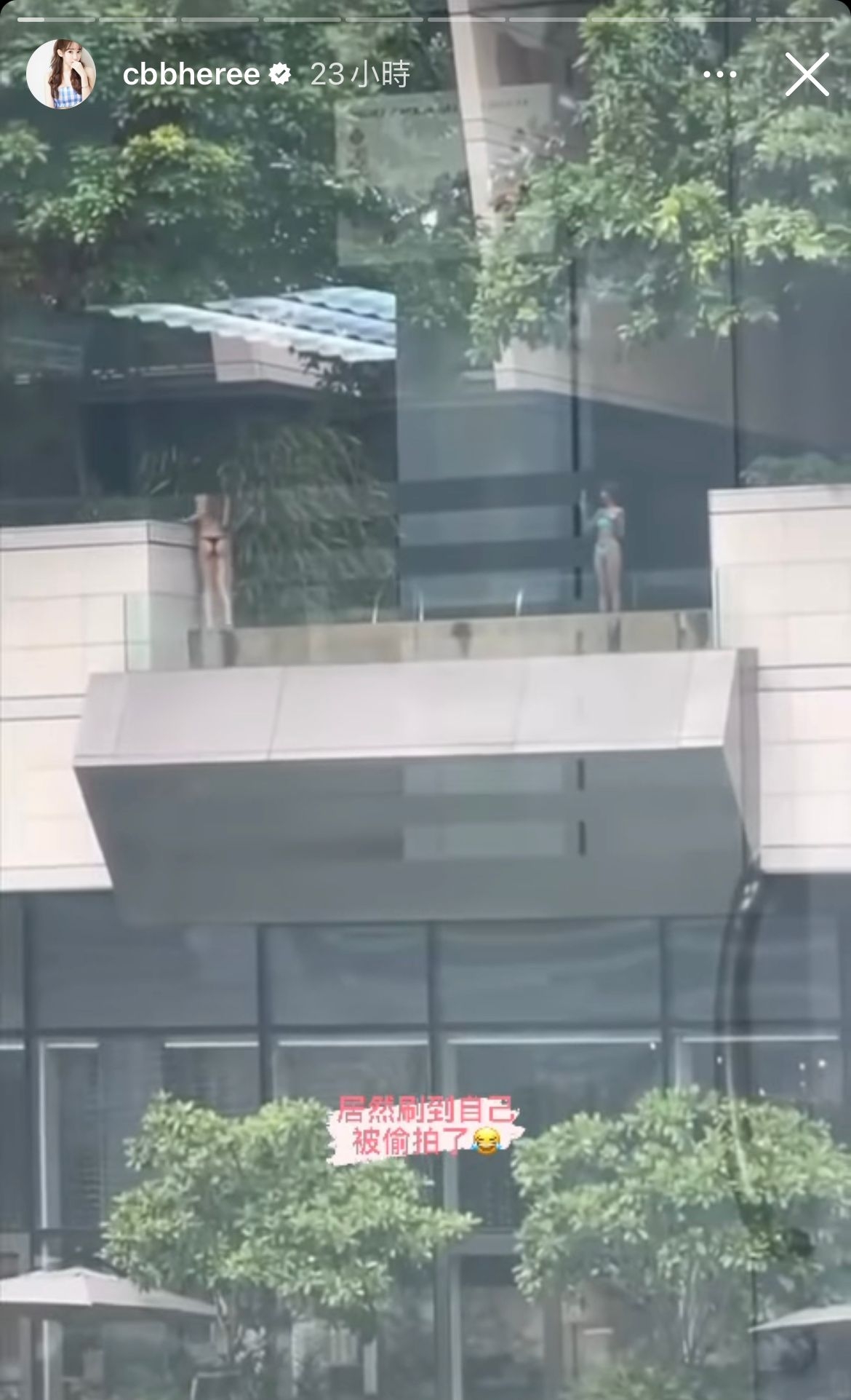 另外,她也在IG Story上分享了一條被偷拍的影片,從拍攝角度來看疑似是被對面的人偷拍。影片疑似沒有使用任何濾鏡,而影片中的Cammi身材比例也看起來很修長,難道今次真的沒有P?