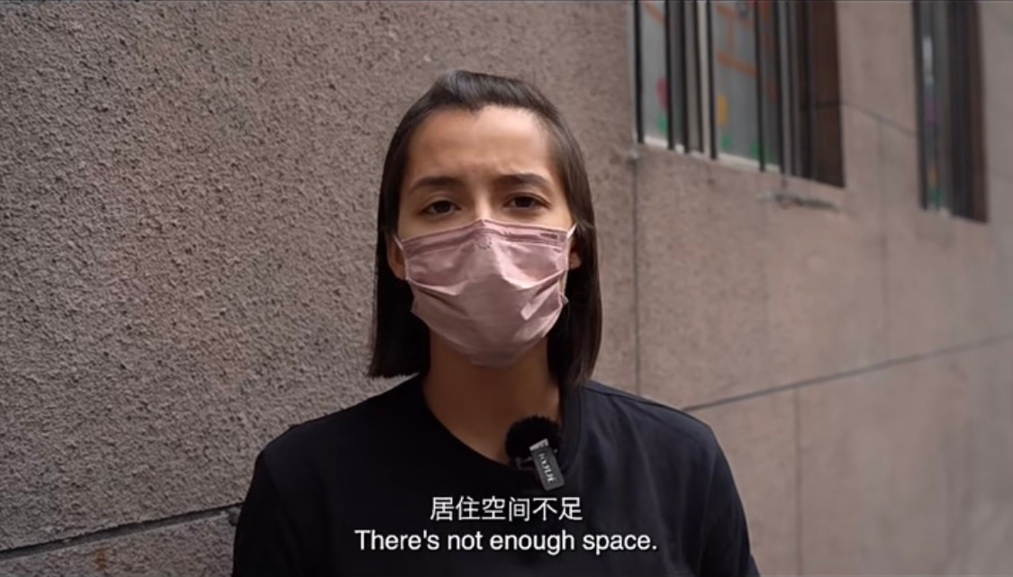 影片中Lisa首次去參觀香港的劏房,她先向大家提到香港的土地不足的問題,而且房屋租金昂貴、公屋輪候時間過長等等,又指大部分輪候公屋的家庭都會住在租金較便宜的劏房,不過就要一家人逼在狹窄的空間。