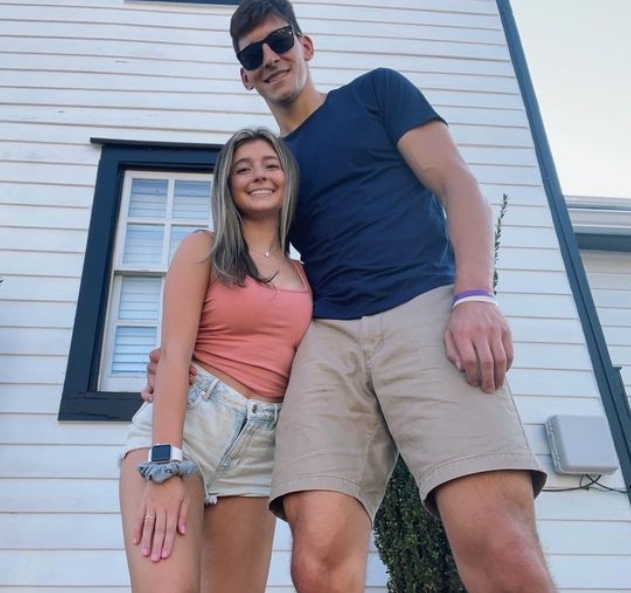 152cm的Brooke,先前在交友軟體Bumble 上認識了現任男友Dylan Painter。兩人一直都在交友軟件上聊天,沒有見過面。一直到當兩人約出來的時候,Brooke 才發現Dylan 竟然有208cm這麼高!整整差了56cm!