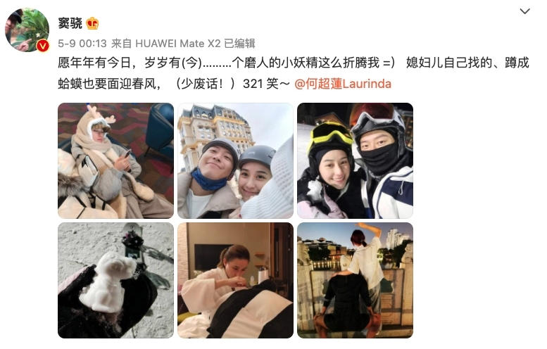早前超蓮30歲生日,身為男友的竇驍當然有在微博發文祝福女友,甚至以「媳婦兒」來稱呼女友,他同時上傳了女友的搞怪照片,雖然表面是埋怨男友不容易做,但事實上是在晒恩愛,更因此登上了微博熱搜,網民都希望兩人早日拉埋天窗~