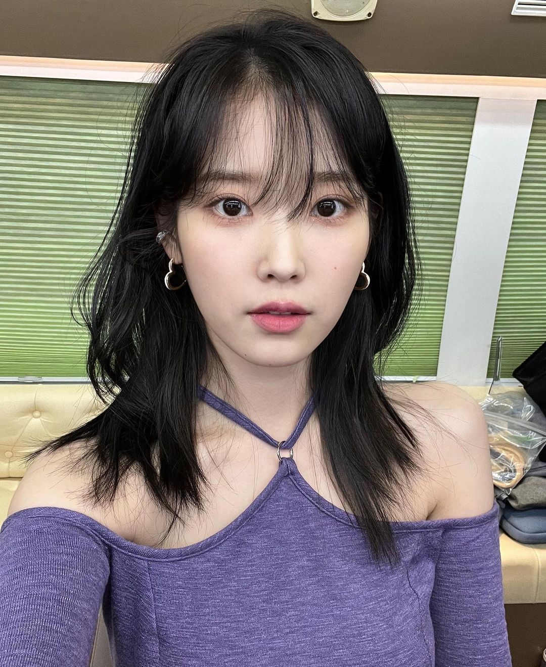 IU把頭髮剪到鎖骨位置,再把髮尾打薄,剪出層次感,然後再搭配氧氣瀏海,營造出慵懶隨性的氛圍,蓬鬆更顯臉小!近年「鎖骨髮」成為大熱,不但有助遮蓋高額頭,還使輪廓線條看起來更流暢~