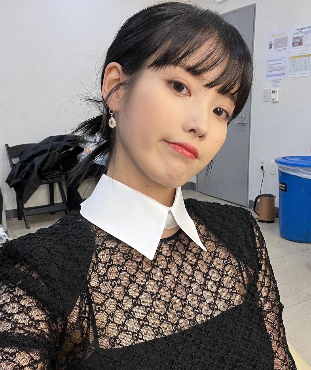 IU向來都很喜歡綁高髮髻,而且她還會拉出少少的髮絲,令造型看起來更自然隨性,營造出慵懶感。這款髮型特別適合天生頭髮少、頭髮較扁塌的女生,會超顯髮量!
