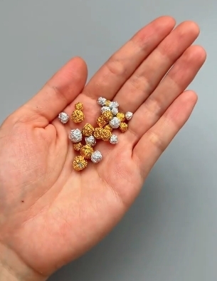 其後再使用金莎朱古力包裝紙揑出大小不同的圓球,約10多個。