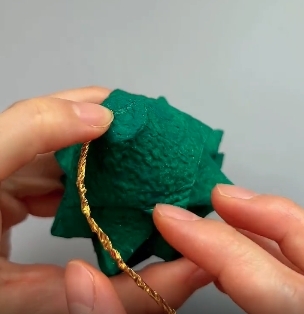 再拿出金莎朱古力包裝紙,把它搓成條狀。