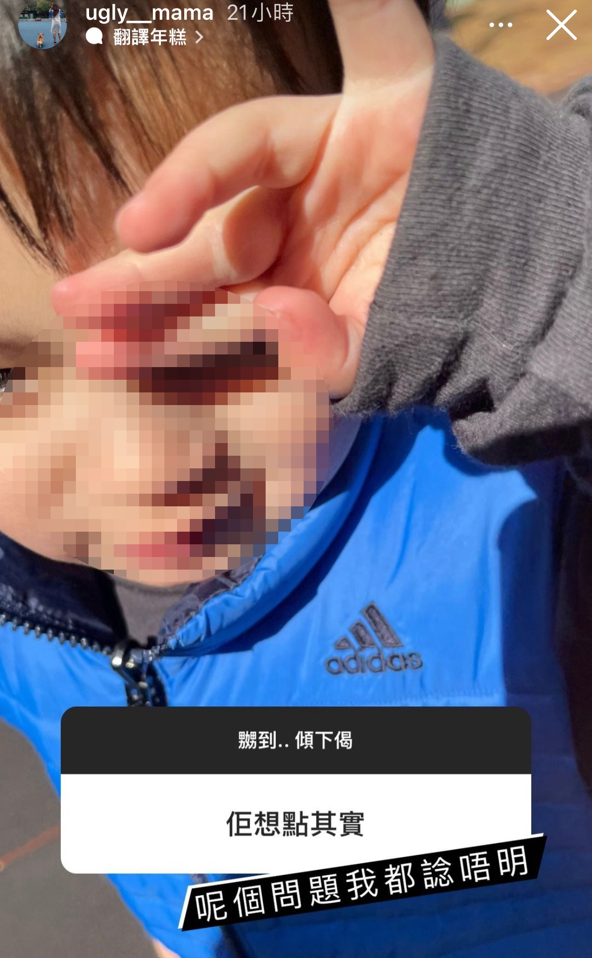 並且在IG上寫下:「你話你攰唔舒服要瞓覺,OKAY!咁我去執嘢,啲仔兩點要去到醫院,只係要求你畀嘢佢哋食,換衫準備好,我返嚟即刻出門口,但你一點半仲瞓喺張床,你要廢要懶無問題,但既然你要生小朋友,可唔可以尊重吓佢哋?唔好因為你嘅問題去影響佢哋,我真係忍唔到幾耐,完全唔理解你呢種人生存為乜!」