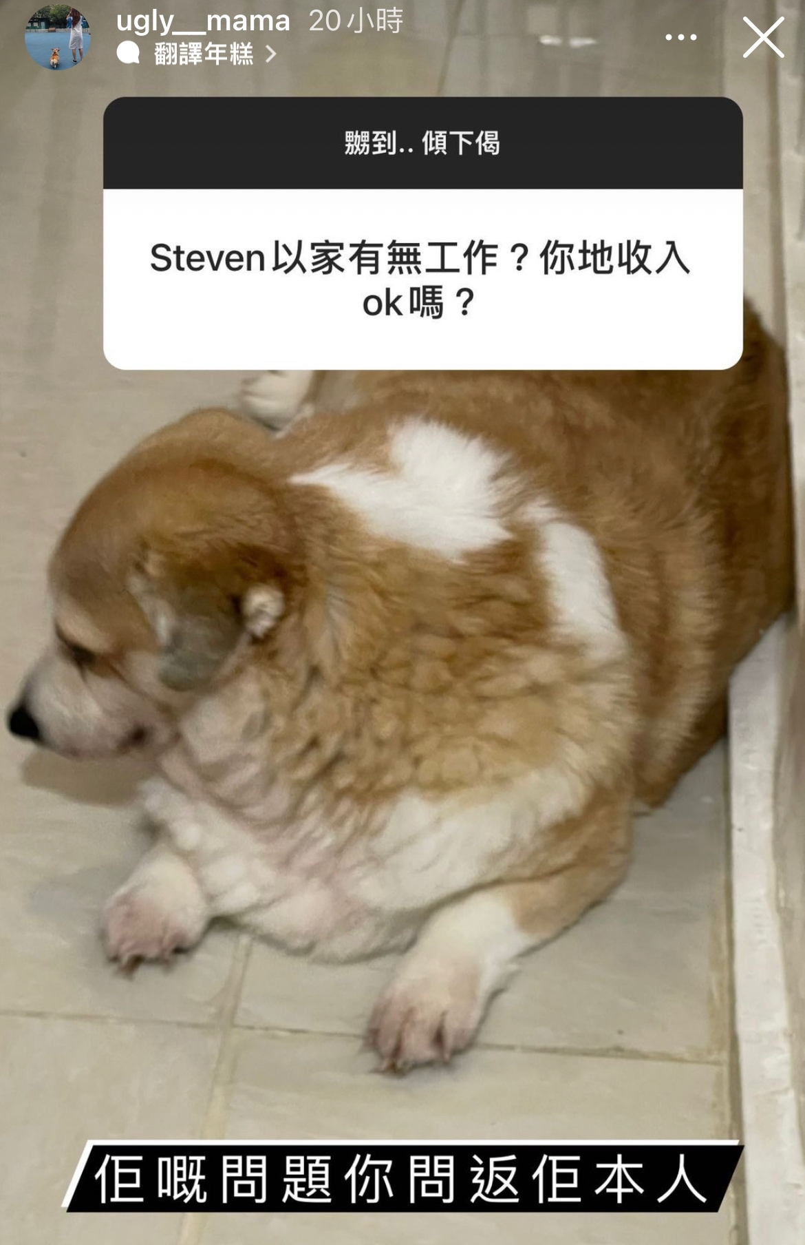 之後雯雯還生氣到要與網民在IG上玩「你問我答」來發洩情緒,而可見大部分網民都是支持雯雯的,更有網民大讚很佩服雯雯「湊住3個仔,仲要有個豬隊友」。