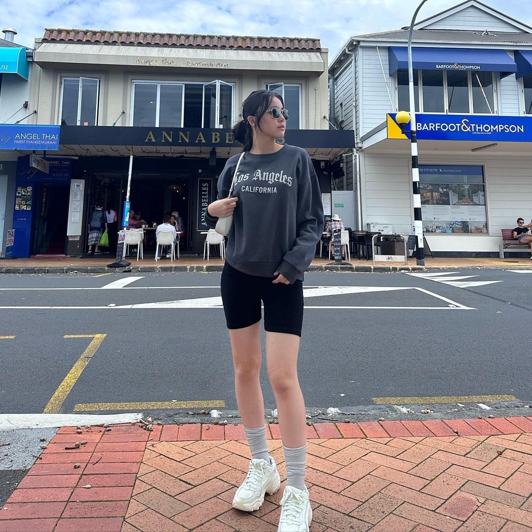 近日姚焯菲在新西蘭的街頭上拍下不少相片,其後她PO上IG,並稱「我的第一條vlog出來了!」。從照片中可見,Chantel穿上一件藍色的衛衣,下身則穿上一件超貼身的黑色短褲,打扮十分輕便隨性,但又不經意展現出時尚感。這點與以往的可愛風截然不同,瞬間「大嗰女」令人眼前一亮!