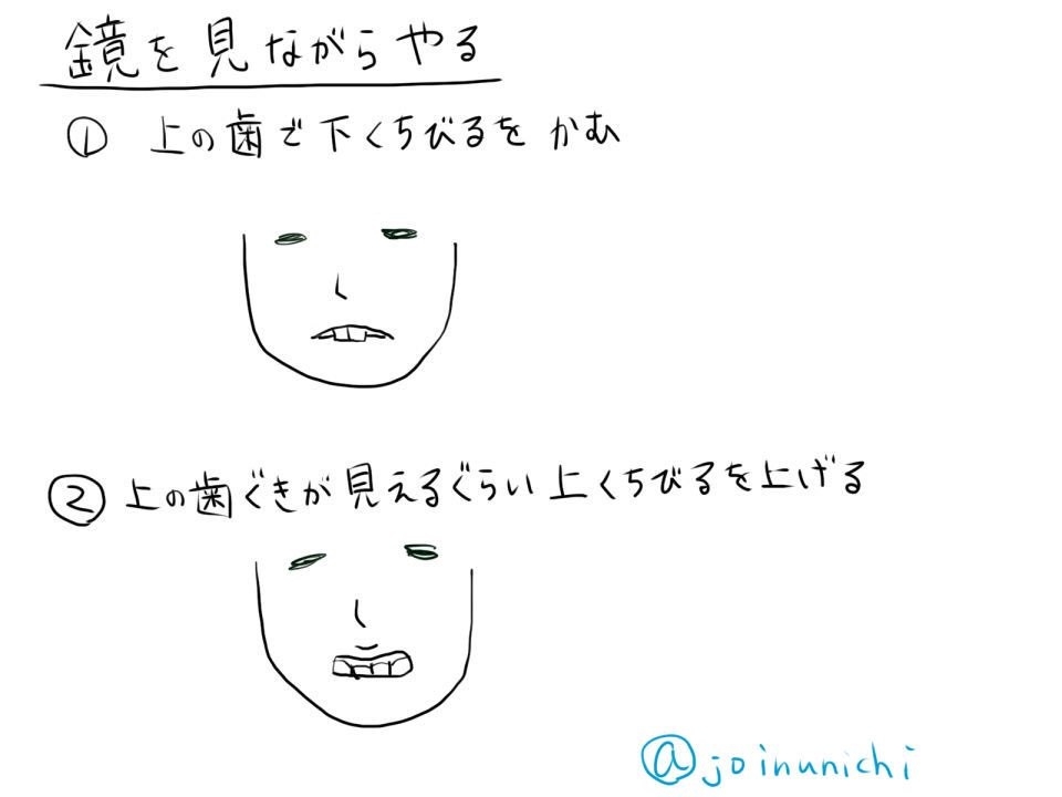 Step 1: 站在鏡子前,將上排牙齒輕咬下唇