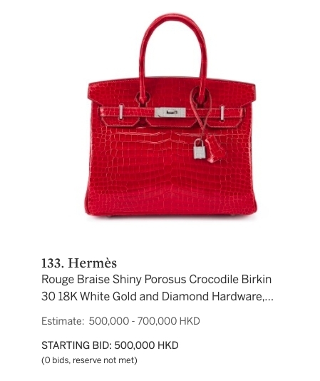 日前經蘇富比舉行的歷時11天「收藏之道:劉鑾雄珍藏絕品手袋(第一部分)」拍賣活動完滿結束,全數77個名牌手袋成功拍賣。不過當中有個別手袋受到買家追捧,成交價比起估價高出兩倍至五倍。當中最高價售出的手袋為鑽石白金扣鱷魚皮手袋,成交價高達152.4萬港元,夠付一層樓的首期。