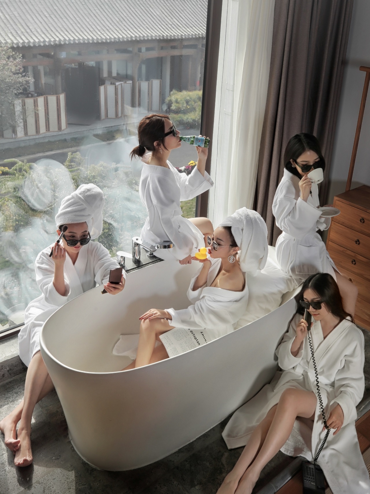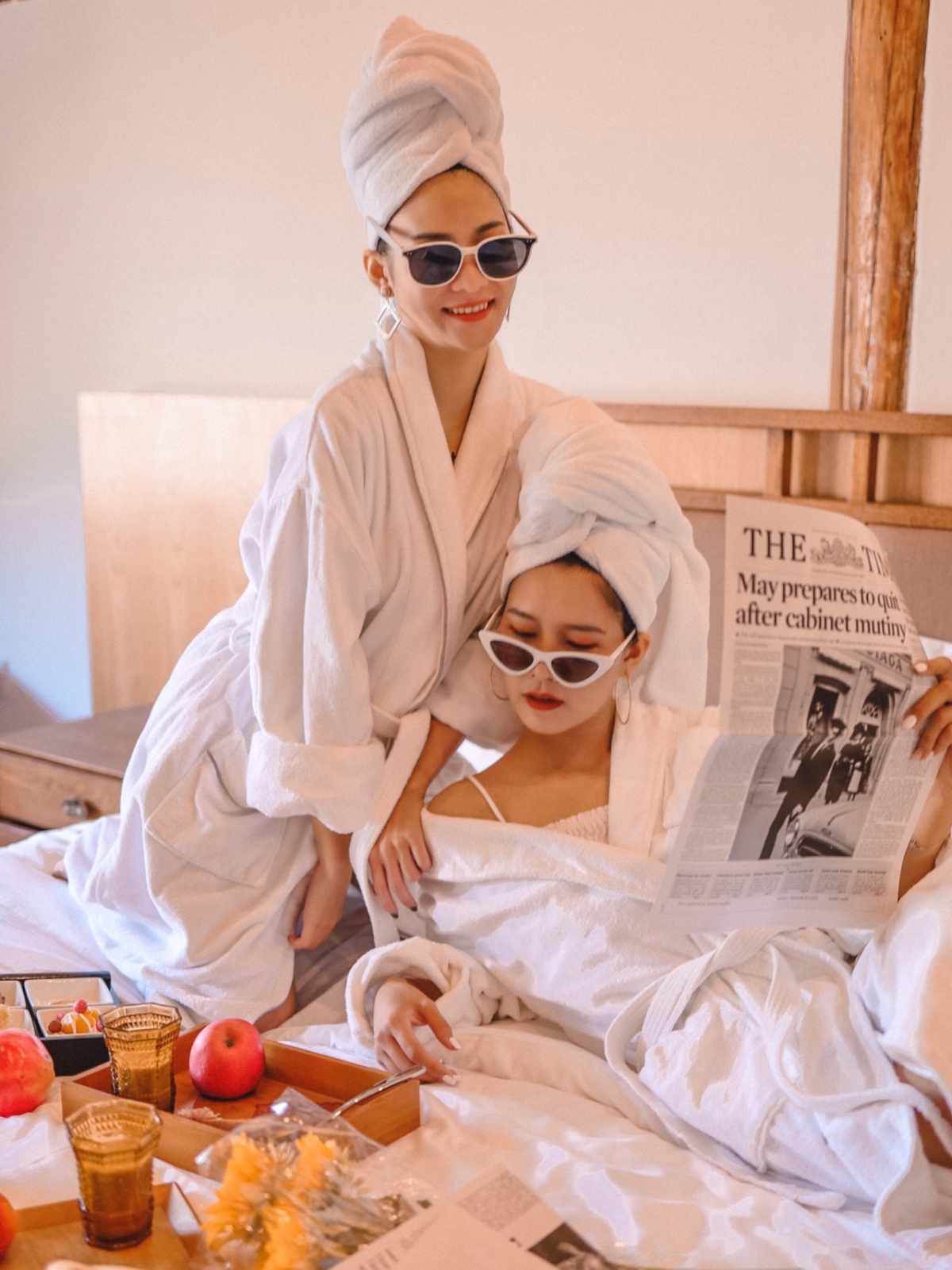 去到旅行一定會同閨蜜一起入住酒店,有時候只要酒店內都能夠同閨蜜一起影出超吸like的浴袍貴婦感照片,而且在酒店內你可以任影!無論想要重拍幾輪都不是問題,只要換上浴袍就可以影到你滿意的照片。