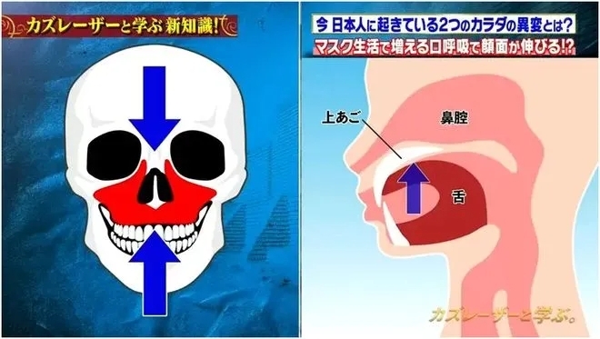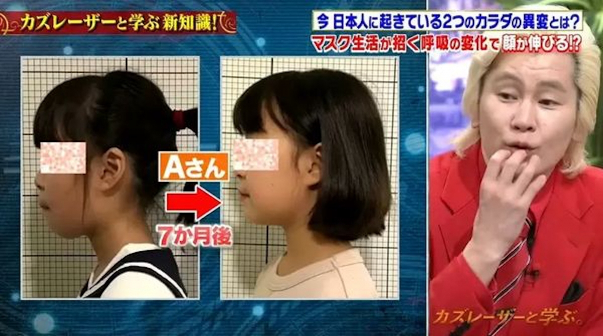 近日日本節目《カズレーザーと学ぶ》請來牙科醫生山口和巳,並分享疫情期間一個壞習慣的嚴重影響!山口醫生指出,戴口罩的時候,由於口罩會阻礙用鼻部呼吸,因此很多人自然會改變呼吸方法,從鼻部變成用嘴部呼吸。這個壞習慣千萬不能小看,因為長期用嘴巴呼吸的話,會導致臉部變長以及牙齒排列出現問題!