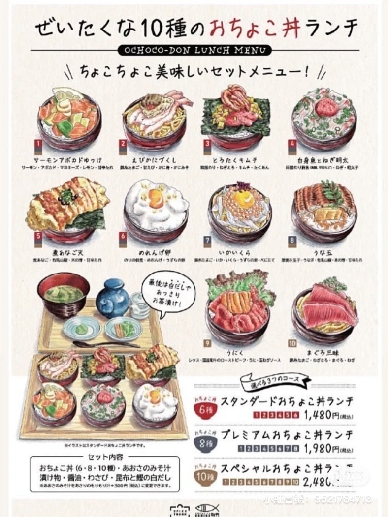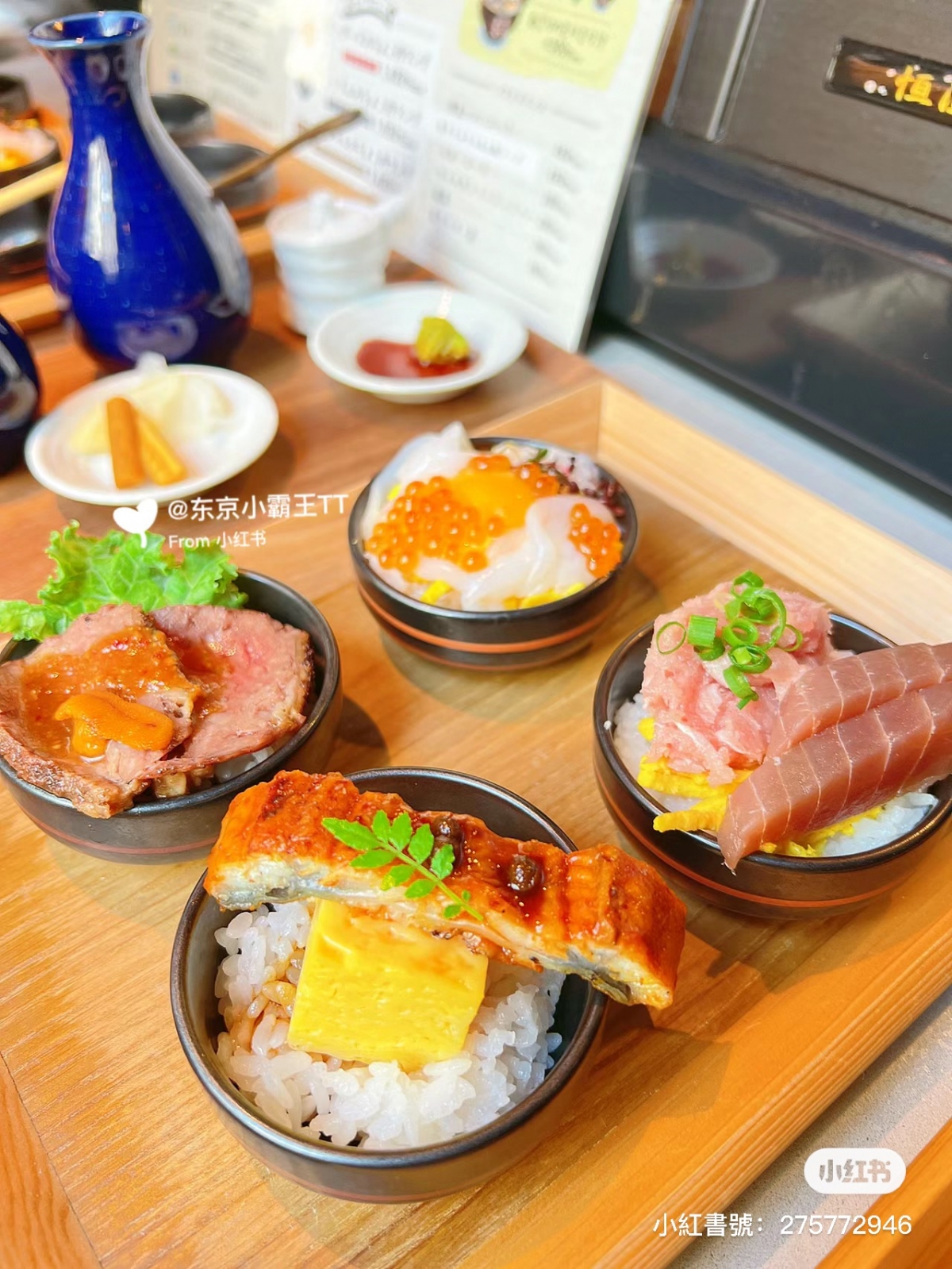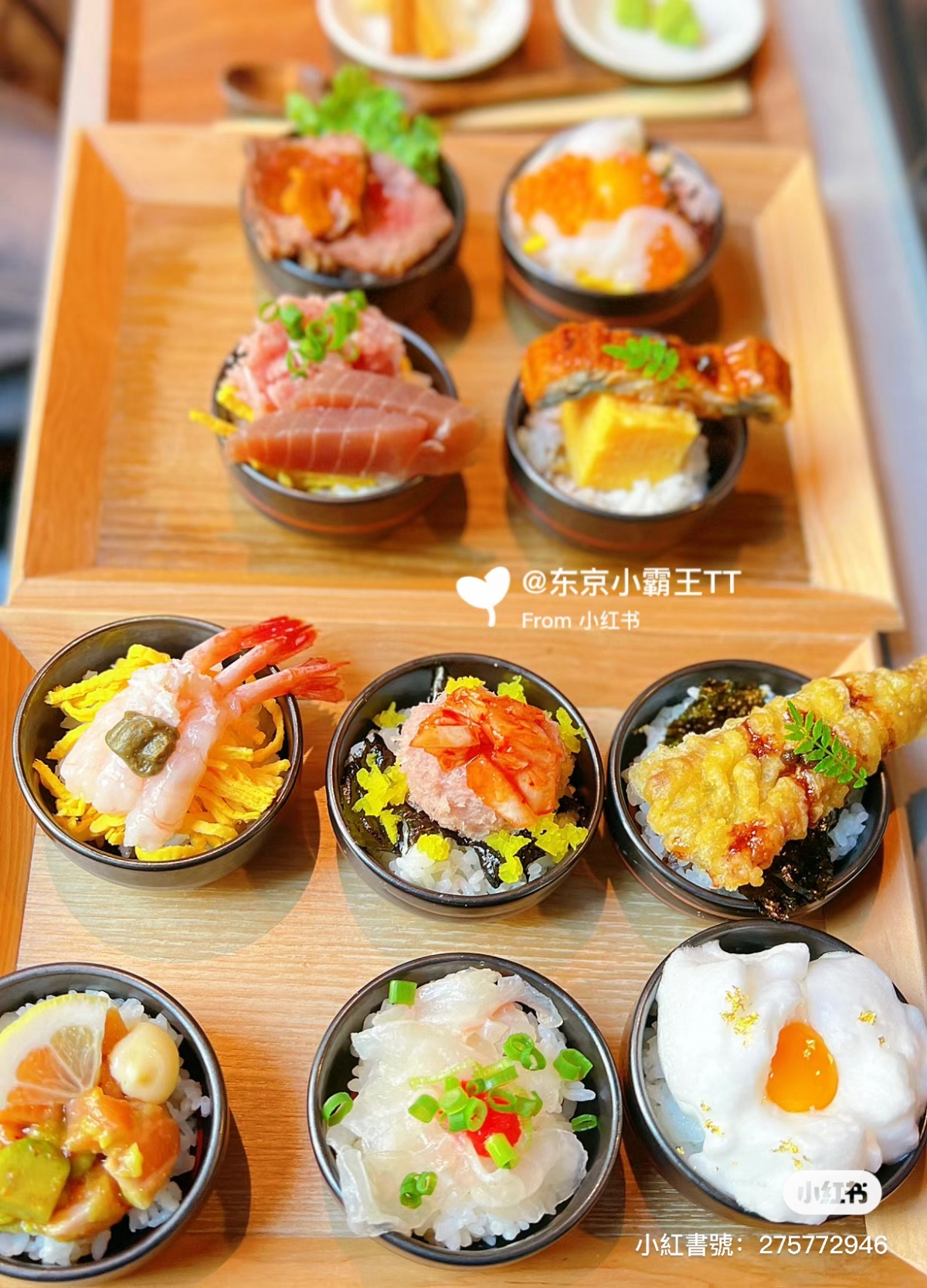 每碗都是小小的,超級可愛,適合食量不太大但又想嘗試到不同口味丼的人。而且也滿多選擇的,有魚生丼、天婦羅丼、金槍魚、海膽肉丼等等,味道也挺不錯!