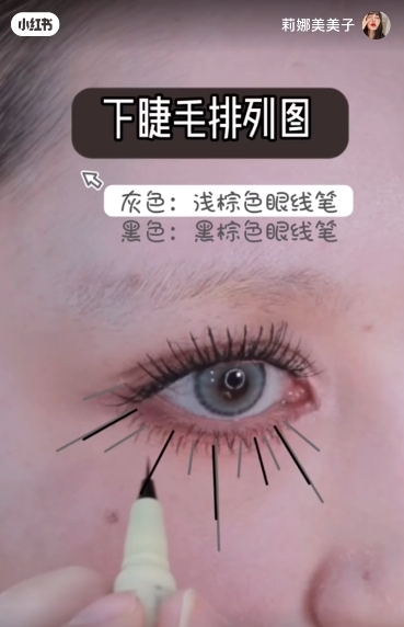 然後再拿出一支灰色和一支黑色的眼線液填補下睫毛,令天生較少睫毛的女生也能塑造出茂密的下睫毛,偷偷再增大眼睛!