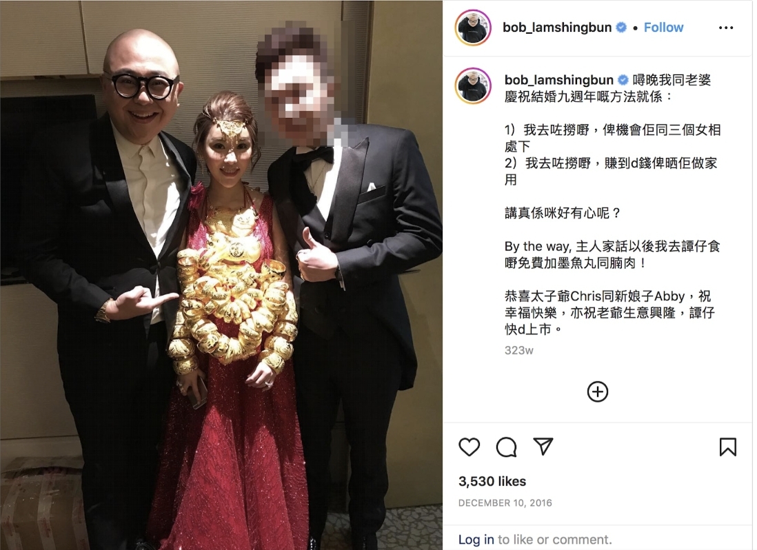 蔡天鳳與鄺港智離婚,並改嫁譚仔米線創辦人兒子,阿BOB為婚禮主持。