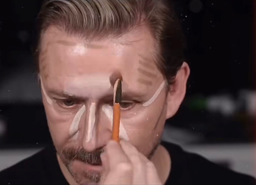 然後利用小刷子去暈染修容的部分,注意控制陰影的範圍,鼻子盡量暈染得窄一點。