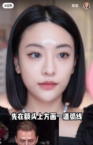 根據「Goss大叔」的分享,先在額頭上畫一條弧線,再在鼻樑上打一道高光。