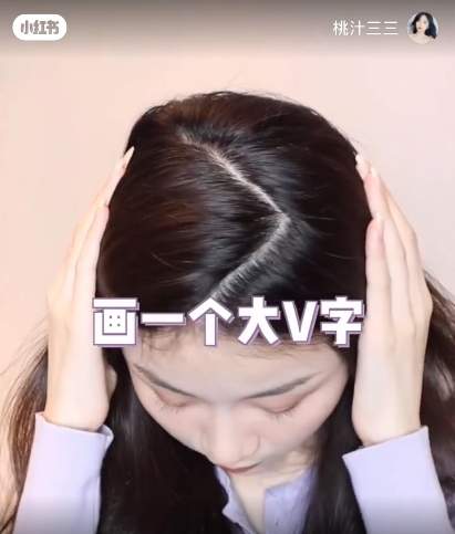 第三種方法的幅度更大,但手法最簡單!先使用尖頭梳在頭髮上畫一個大V字。
