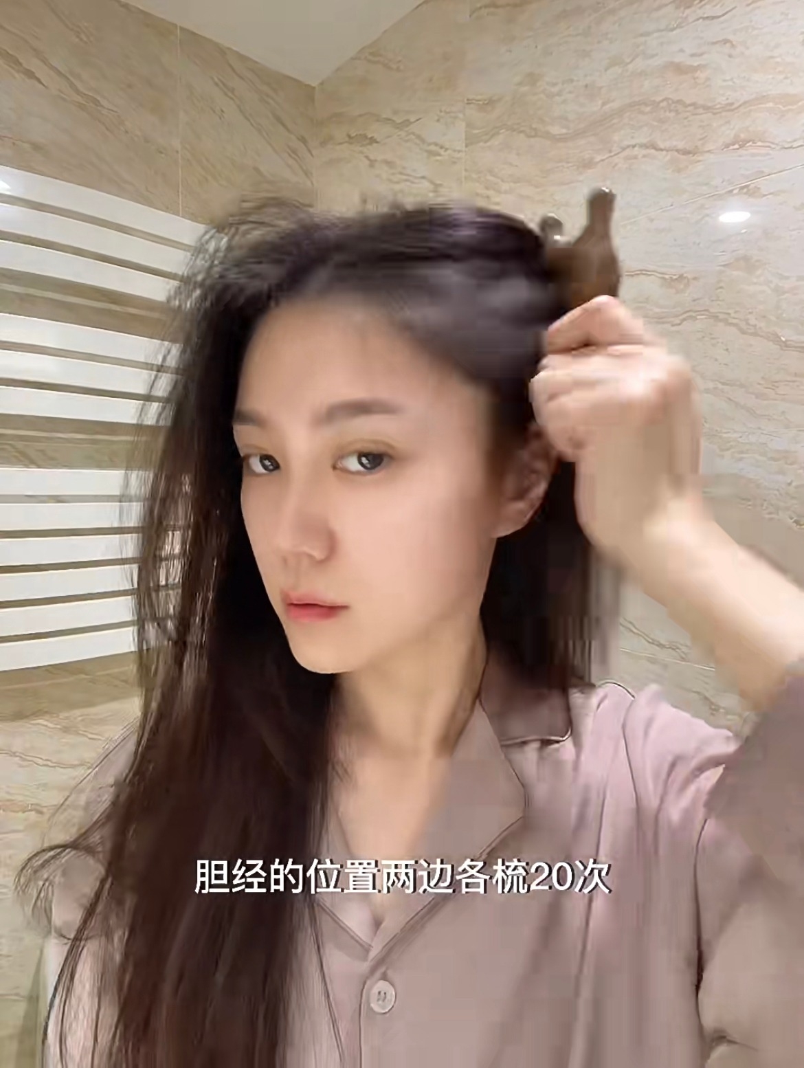 之後膽經的位置兩邊各梳20次,這個動作有助補氣血和改善睡眠。