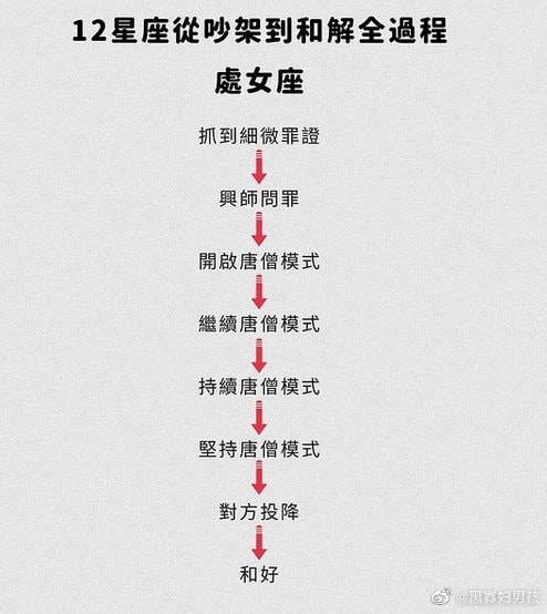 處女座出了名心思細密,他們眼中容忍不了細微錯誤,所以當吵架的時候,就會出現唐僧般模式,煩到你頂唔順,直到你自己向他們認錯!