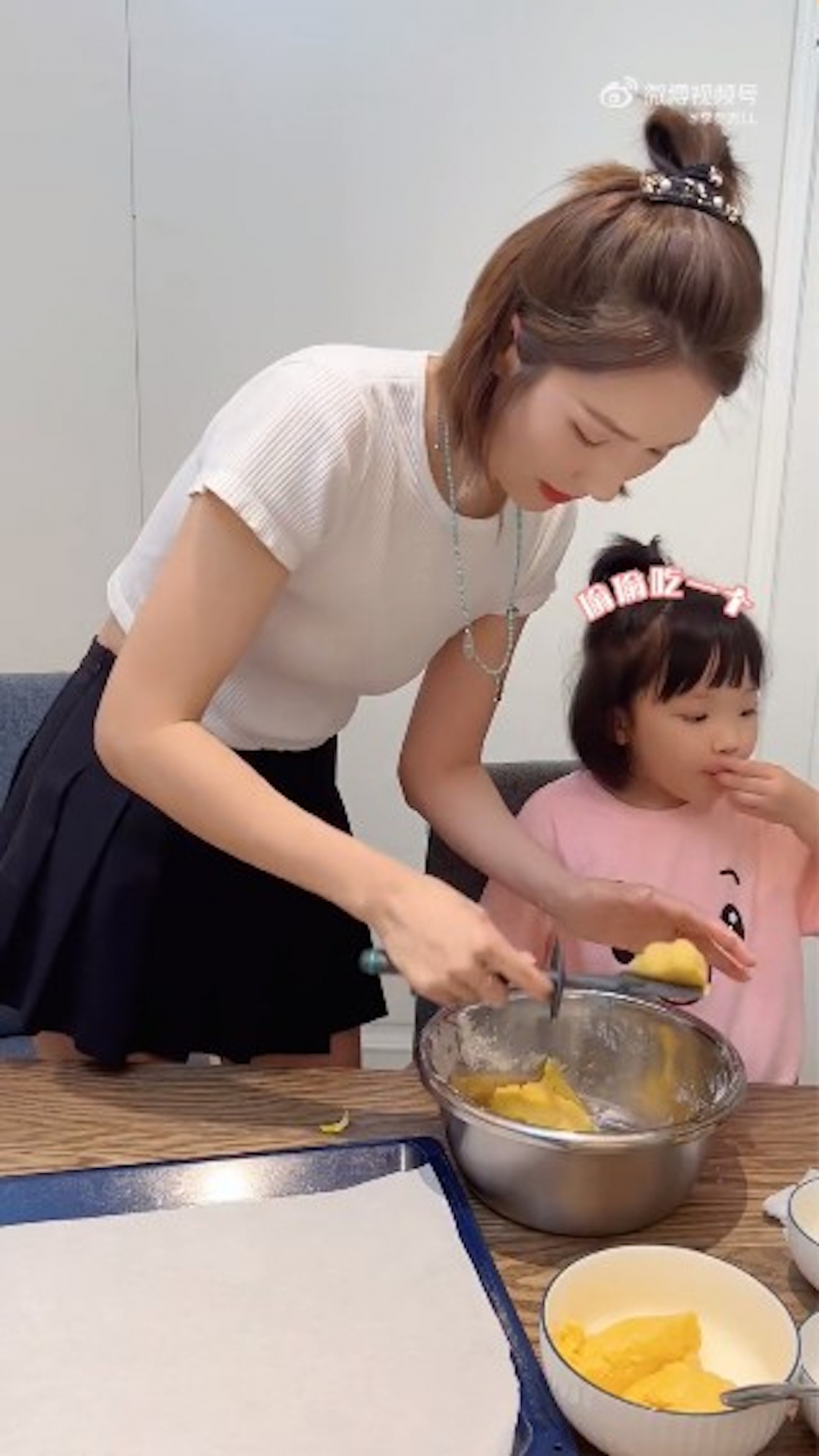 近日李亞男在曬出同長女Gabby 一起整麵包的短片,片中的Gabby相當聽話,專心聽媽咪講解,仲化身成小助手,幫媽咪一起整。雖然一直在偷吃,但是李亞男也在過程中也